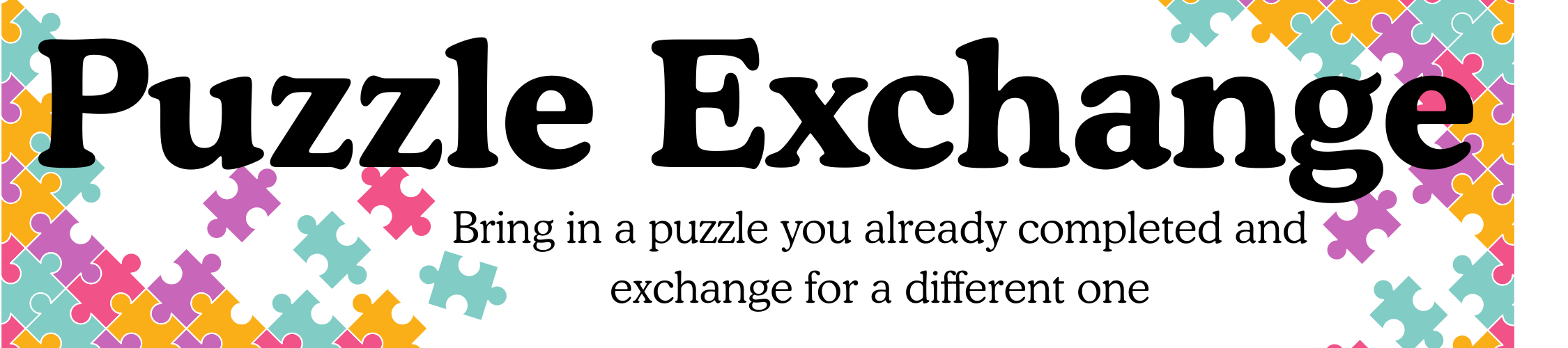 Simply bring in a puzzle you’ve already completed and swap it for a new one. Don’t have a puzzle to trade right now? That’s okay — you’re welcome to borrow one anyway!